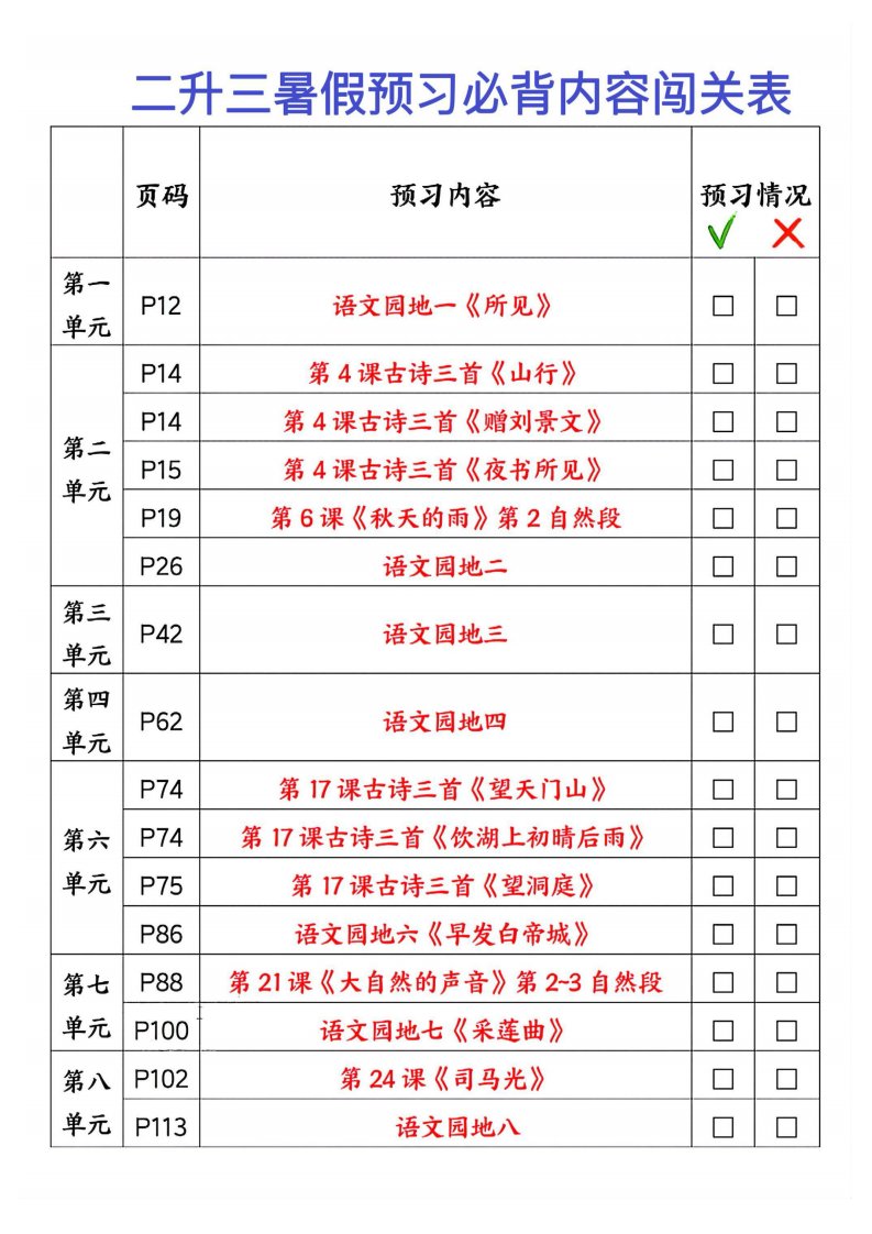 2025秋二升三暑假预习闯关表三上语文_共11页