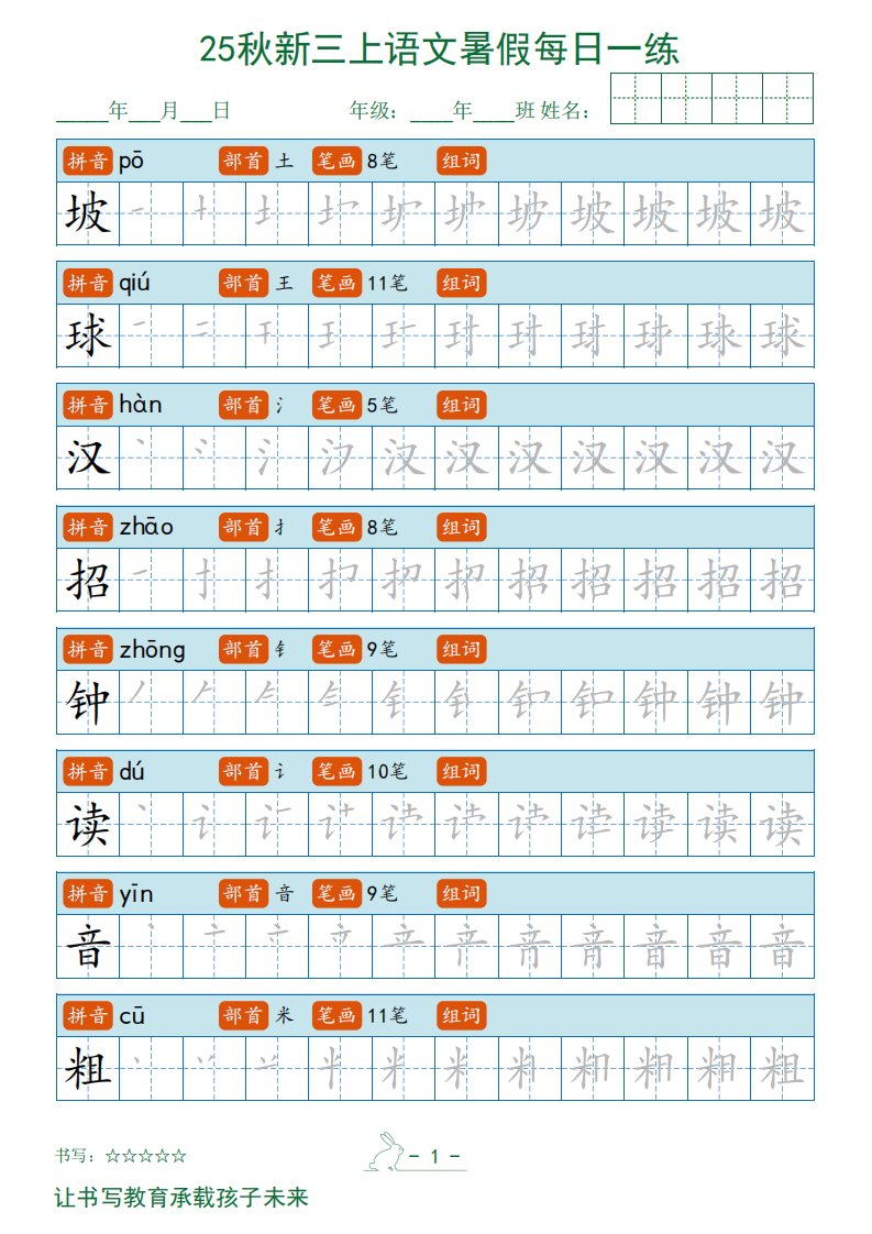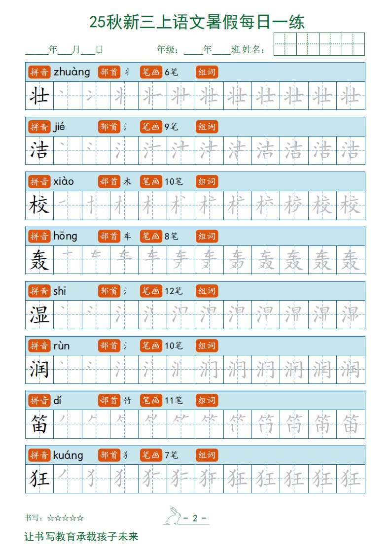 当前位置: 首页小学资源小学三年级正文 2025秋新三上语文暑假每日一练字帖_共30页 小学三年级 1 周前 0 0 15 以上为部分内容预览,如需源文档请登录您的会员账号进行下载! 声明:本站所有文章,如无特殊说明或标注,均为本站原创发布。任何个人或组织,在未征得本站同意时,禁止复制、盗用、采集、发布本站内容到任何网站、书籍等各类媒体平台。如若本站内容侵犯了原著者的合法权益,可联系我们进行处理。 尚学资源永久会员 打赏 收藏 海报 链接