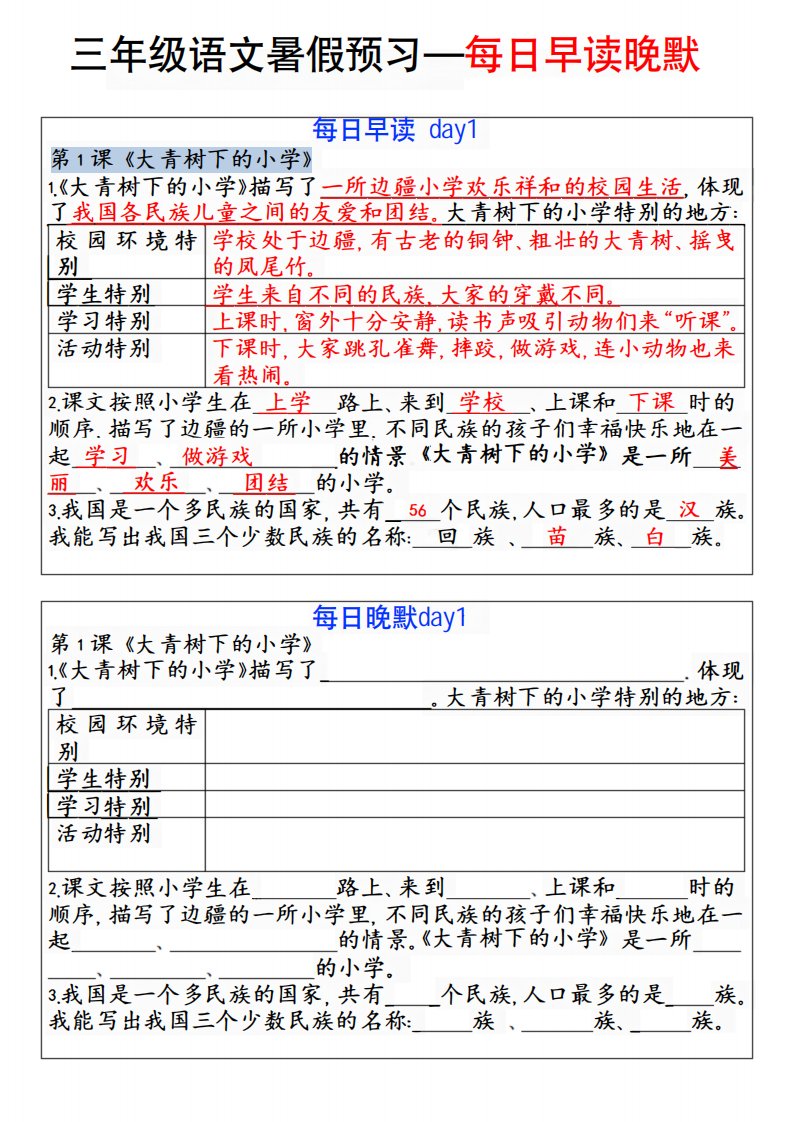 当前位置: 首页小学资源小学三年级正文 三年级语文暑假预习—每日早读晚默_共30页 小学三年级 1 周前 0 0 15 以上为部分内容预览,如需源文档请登录您的会员账号进行下载! 声明:本站所有文章,如无特殊说明或标注,均为本站原创发布。任何个人或组织,在未征得本站同意时,禁止复制、盗用、采集、发布本站内容到任何网站、书籍等各类媒体平台。如若本站内容侵犯了原著者的合法权益,可联系我们进行处理。 尚学资源永久会员 打赏 收藏 海报 链接