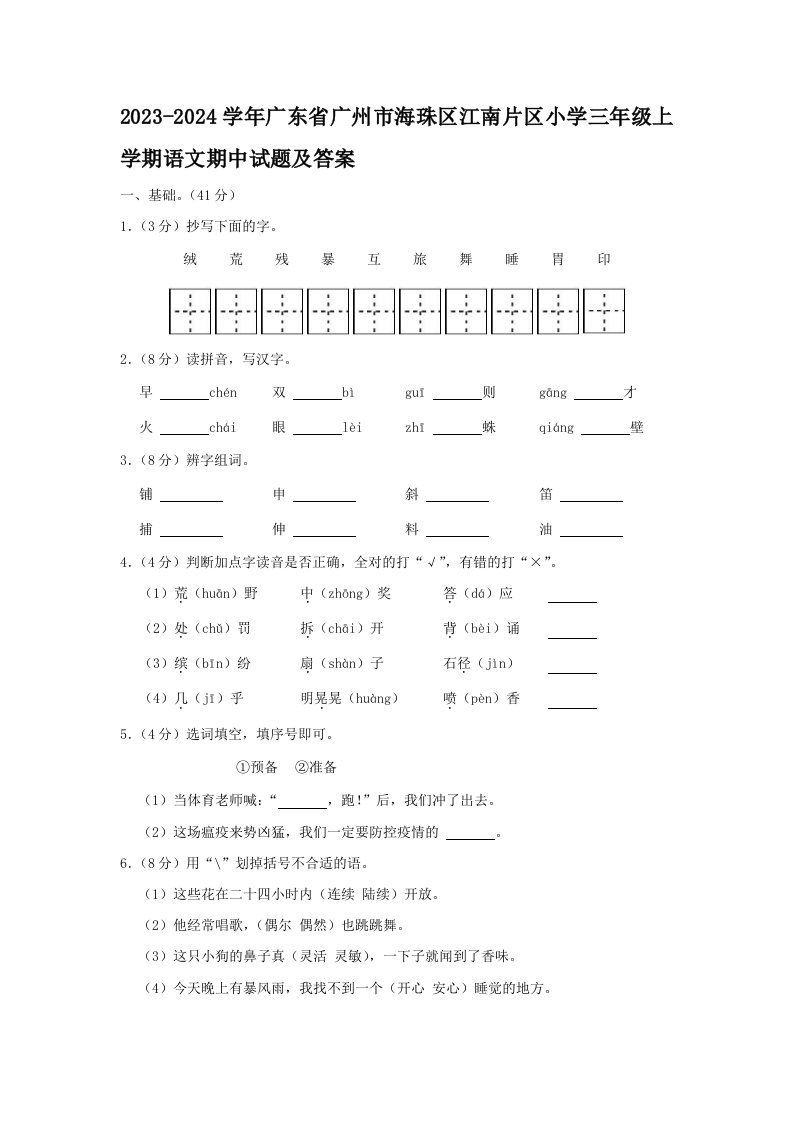 当前位置: 首页小学资源小学三年级正文 2023-2024学年广东省广州市海珠区江南片区小学三年级上学期语文期中试题及答案(Word版)_共9页 小学三年级 1 周前 0 0 5 以上为部分内容预览,如需源文档请登录您的会员账号进行下载! 声明:本站所有文章,如无特殊说明或标注,均为本站原创发布。任何个人或组织,在未征得本站同意时,禁止复制、盗用、采集、发布本站内容到任何网站、书籍等各类媒体平台。如若本站内容侵犯了原著者的合法权益,可联系我们进行处理。 尚学资源永久会员 打赏 收藏 海报 链接