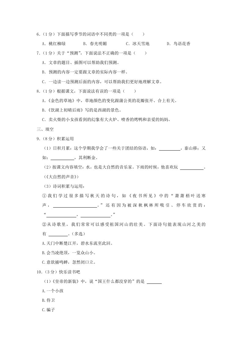 当前位置: 首页小学资源小学三年级正文 2023-2024学年广东省广州市南沙区小学三年级上学期语文期末试题及答案(Word版)_共10页 小学三年级 1 周前 0 0 5 以上为部分内容预览,如需源文档请登录您的会员账号进行下载! 声明:本站所有文章,如无特殊说明或标注,均为本站原创发布。任何个人或组织,在未征得本站同意时,禁止复制、盗用、采集、发布本站内容到任何网站、书籍等各类媒体平台。如若本站内容侵犯了原著者的合法权益,可联系我们进行处理。 尚学资源永久会员 打赏 收藏 海报 链接