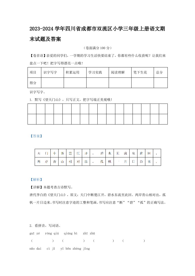 当前位置: 首页小学资源小学三年级正文 2023-2024学年四川省成都市双流区小学三年级上册语文期末试题及答案(Word版)_共15页 小学三年级 1 周前 0 0 10 以上为部分内容预览,如需源文档请登录您的会员账号进行下载! 声明:本站所有文章,如无特殊说明或标注,均为本站原创发布。任何个人或组织,在未征得本站同意时,禁止复制、盗用、采集、发布本站内容到任何网站、书籍等各类媒体平台。如若本站内容侵犯了原著者的合法权益,可联系我们进行处理。 尚学资源永久会员 打赏 收藏 海报 链接