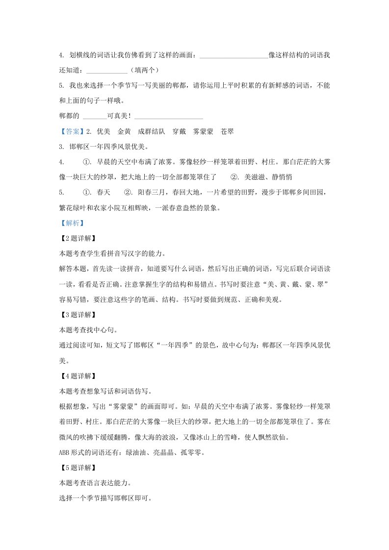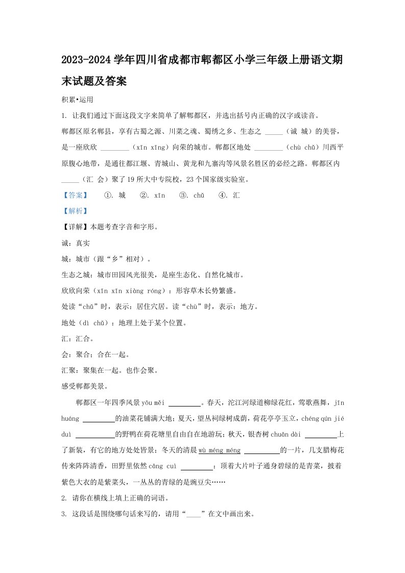 2023-2024学年四川省成都市郫都区小学三年级上册语文期末试题及答案(Word版)_共13页