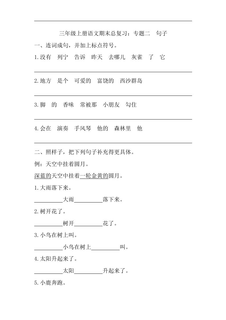 当前位置: 首页小学资源小学三年级正文 三(上)语文期末试题-专题句子专项_共6页 小学三年级 1 周前 0 0 5 以上为部分内容预览,如需源文档请登录您的会员账号进行下载! 声明:本站所有文章,如无特殊说明或标注,均为本站原创发布。任何个人或组织,在未征得本站同意时,禁止复制、盗用、采集、发布本站内容到任何网站、书籍等各类媒体平台。如若本站内容侵犯了原著者的合法权益,可联系我们进行处理。 尚学资源永久会员 打赏 收藏 海报 链接