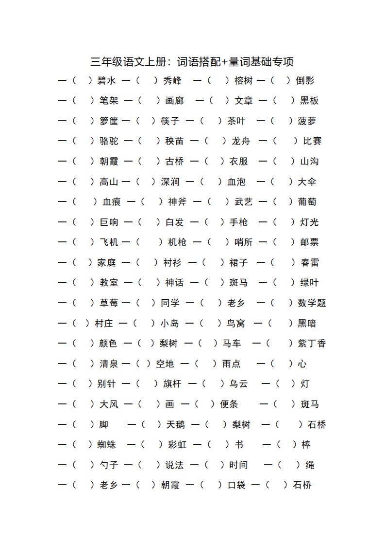 当前位置: 首页小学资源小学三年级正文 三(上)语文词语搭配+量词基础专项_共7页 小学三年级 1 周前 0 0 5 以上为部分内容预览,如需源文档请登录您的会员账号进行下载! 声明:本站所有文章,如无特殊说明或标注,均为本站原创发布。任何个人或组织,在未征得本站同意时,禁止复制、盗用、采集、发布本站内容到任何网站、书籍等各类媒体平台。如若本站内容侵犯了原著者的合法权益,可联系我们进行处理。 尚学资源永久会员 打赏 收藏 海报 链接