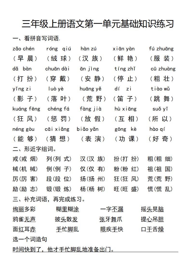 三年级上册语文第一单元基础知识练习_共6页