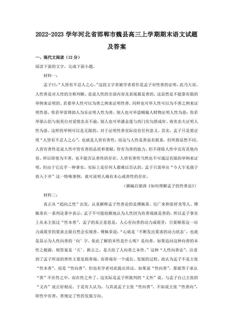 当前位置: 首页小学资源小学三年级正文 2022-2023学年河北省邯郸市魏县高三上学期期末语文试题及答案(Word版)_共22页 小学三年级 1 周前 0 0 15 以上为部分内容预览,如需源文档请登录您的会员账号进行下载! 声明:本站所有文章,如无特殊说明或标注,均为本站原创发布。任何个人或组织,在未征得本站同意时,禁止复制、盗用、采集、发布本站内容到任何网站、书籍等各类媒体平台。如若本站内容侵犯了原著者的合法权益,可联系我们进行处理。 尚学资源永久会员 打赏 收藏 海报 链接