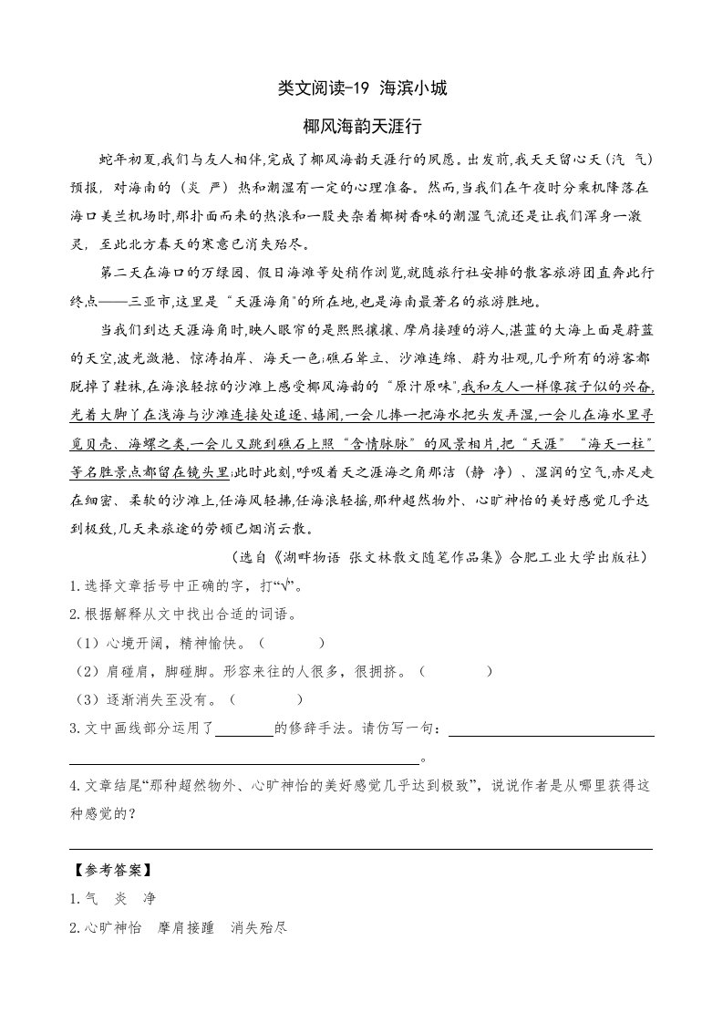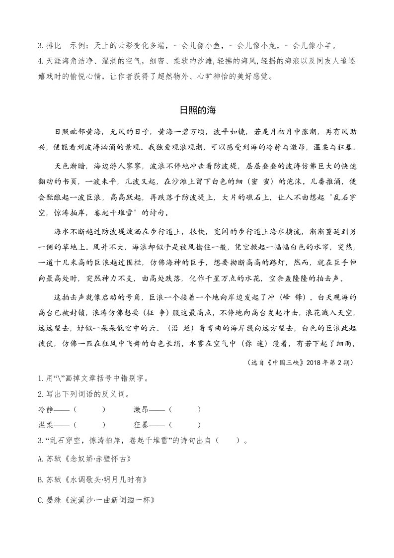 当前位置: 首页小学资源小学三年级正文 三年级语文上册类文阅读19海滨小城(部编版)_共3页 小学三年级 1 周前 0 0 5 以上为部分内容预览,如需源文档请登录您的会员账号进行下载! 声明:本站所有文章,如无特殊说明或标注,均为本站原创发布。任何个人或组织,在未征得本站同意时,禁止复制、盗用、采集、发布本站内容到任何网站、书籍等各类媒体平台。如若本站内容侵犯了原著者的合法权益,可联系我们进行处理。 尚学资源永久会员 打赏 收藏 海报 链接