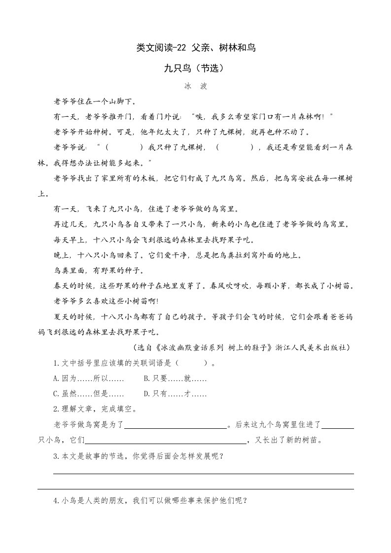 三年级语文上册类文阅读22父亲、树林和鸟(部编版)_共3页