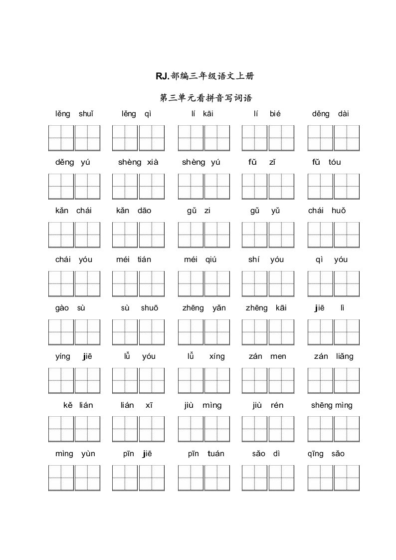 三年级语文上册【看拼音写词语】看拼音写词语3(附答案)(部编版)_共2页