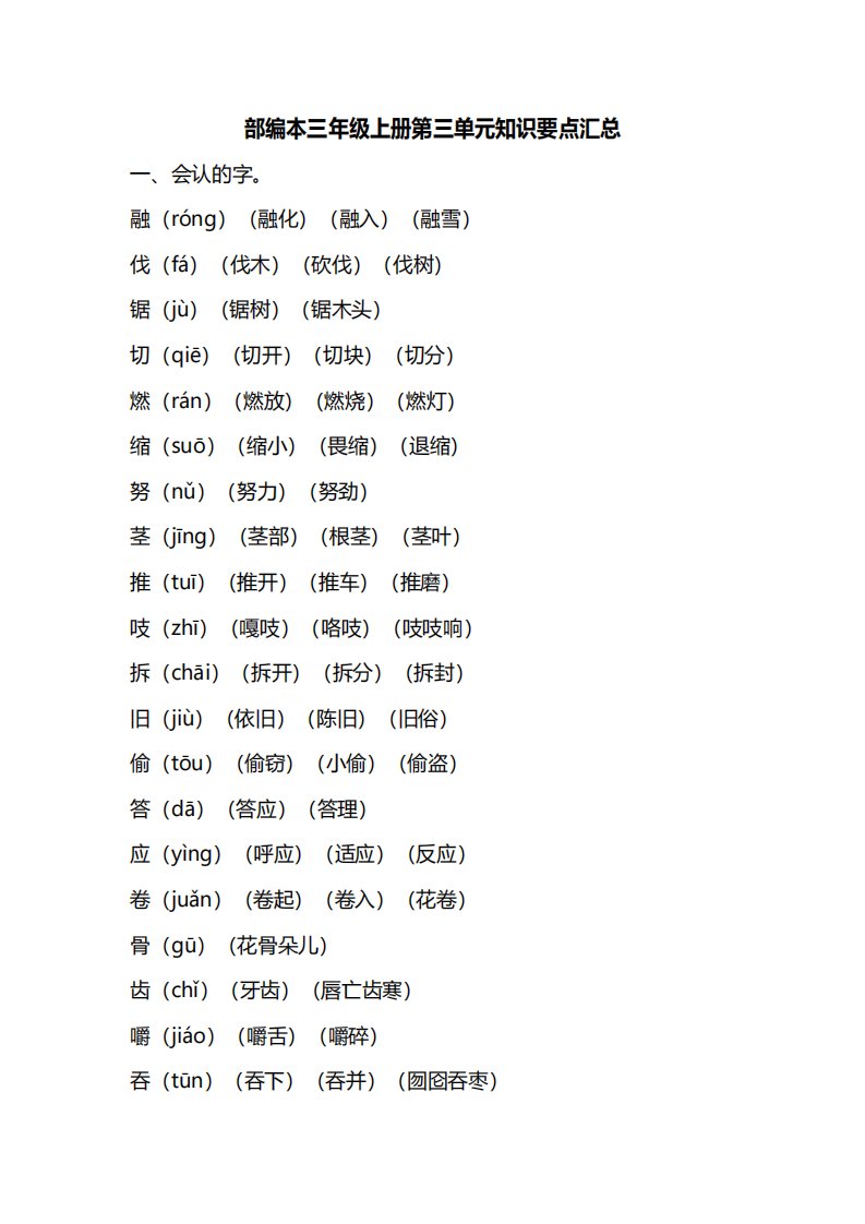 当前位置: 首页小学资源小学三年级正文 三年级语文上册第三单元知识要点汇总(部编版)_共8页 小学三年级 1 周前 0 0 5 以上为部分内容预览,如需源文档请登录您的会员账号进行下载! 声明:本站所有文章,如无特殊说明或标注,均为本站原创发布。任何个人或组织,在未征得本站同意时,禁止复制、盗用、采集、发布本站内容到任何网站、书籍等各类媒体平台。如若本站内容侵犯了原著者的合法权益,可联系我们进行处理。 尚学资源永久会员 打赏 收藏 海报 链接