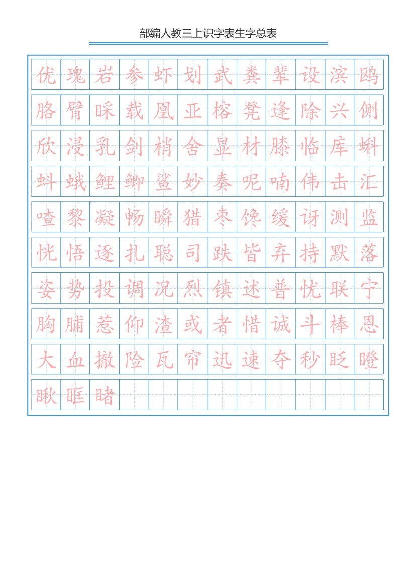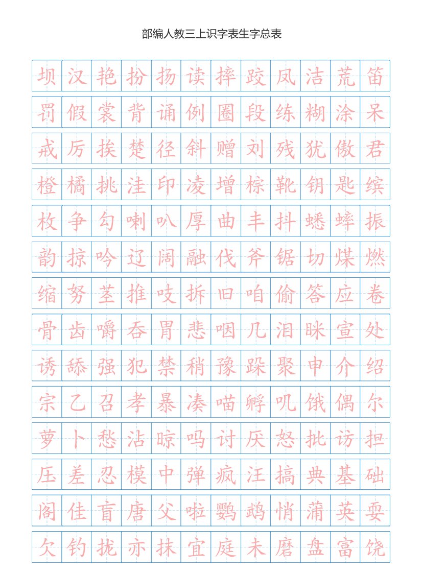 三年级语文上册3上识字表生字总表书写练习【2页】)(部编版)_共2页