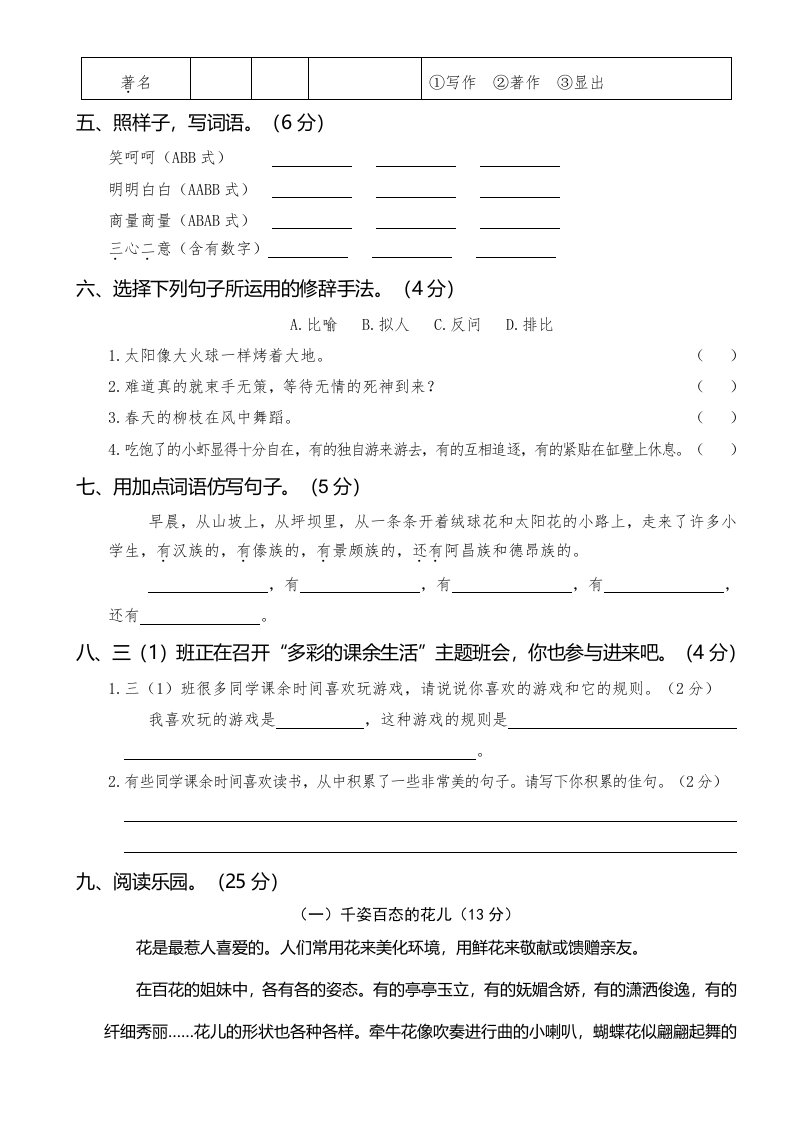 当前位置: 首页小学资源小学三年级正文 三年级语文上册第一次月考卷(二)(部编版)_共5页 小学三年级 1 周前 0 0 5 以上为部分内容预览,如需源文档请登录您的会员账号进行下载! 声明:本站所有文章,如无特殊说明或标注,均为本站原创发布。任何个人或组织,在未征得本站同意时,禁止复制、盗用、采集、发布本站内容到任何网站、书籍等各类媒体平台。如若本站内容侵犯了原著者的合法权益,可联系我们进行处理。 尚学资源永久会员 打赏 收藏 海报 链接