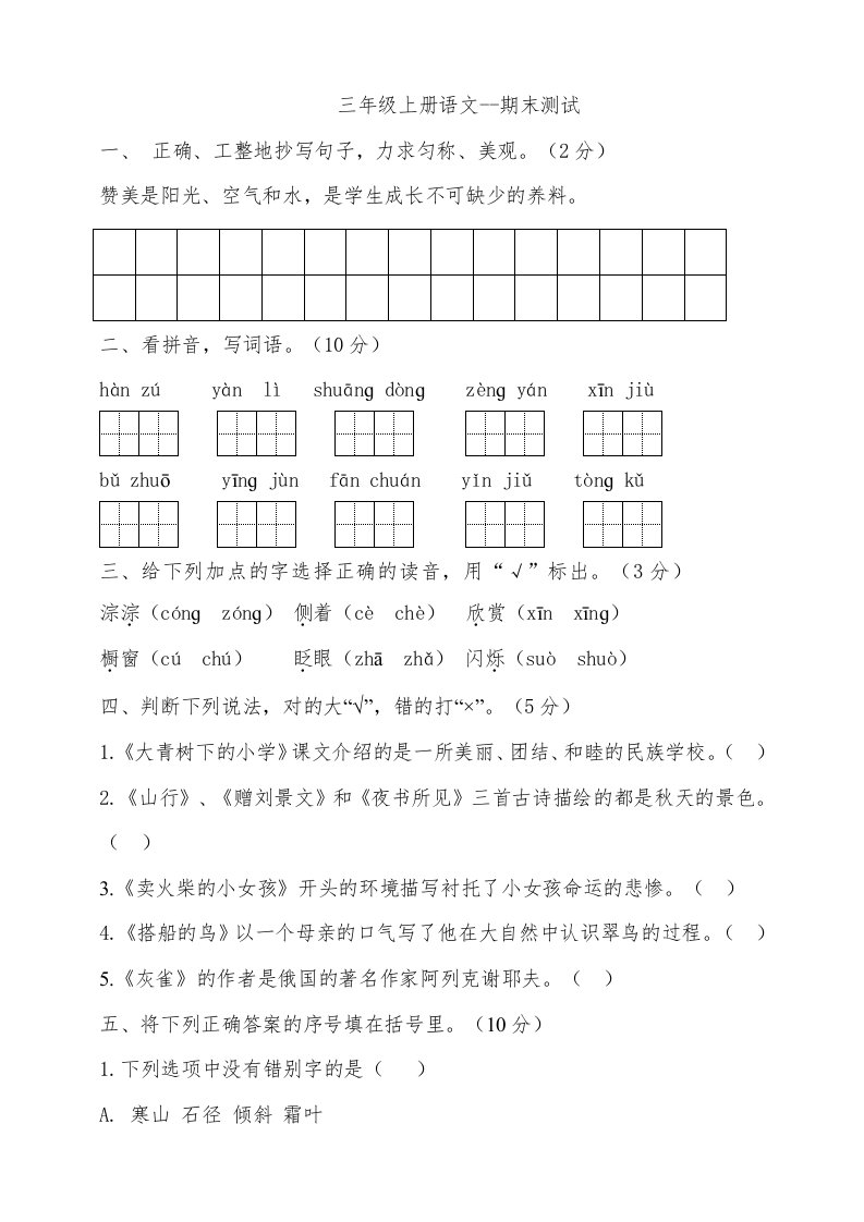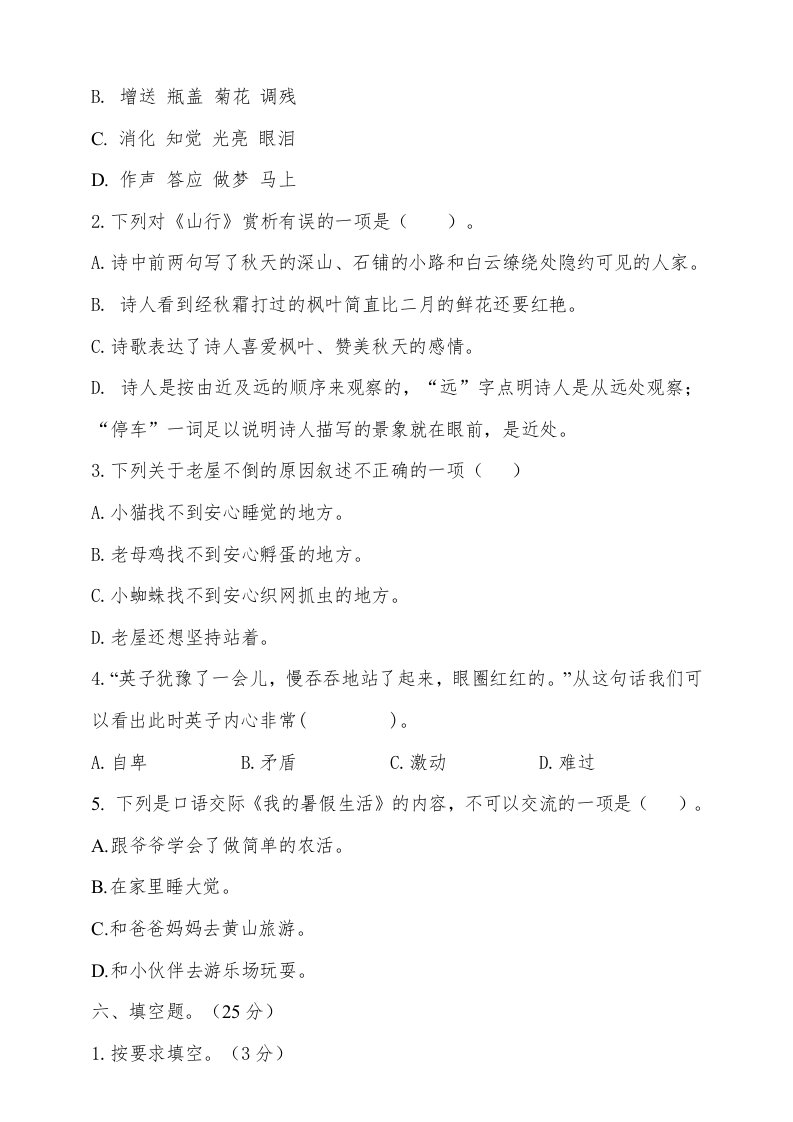当前位置: 首页小学资源小学三年级正文 三年级语文上册(期末测试题)版(20)(部编版)_共12页 小学三年级 1 周前 0 0 10 以上为部分内容预览,如需源文档请登录您的会员账号进行下载! 声明:本站所有文章,如无特殊说明或标注,均为本站原创发布。任何个人或组织,在未征得本站同意时,禁止复制、盗用、采集、发布本站内容到任何网站、书籍等各类媒体平台。如若本站内容侵犯了原著者的合法权益,可联系我们进行处理。 尚学资源永久会员 打赏 收藏 海报 链接