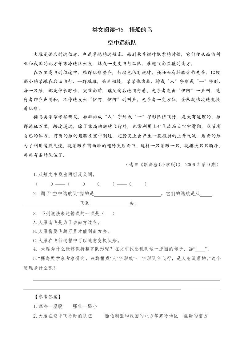 当前位置: 首页小学资源小学三年级正文 三年级语文上册类文阅读15搭船的鸟(部编版)_共3页 小学三年级 1 周前 0 0 5 以上为部分内容预览,如需源文档请登录您的会员账号进行下载! 声明:本站所有文章,如无特殊说明或标注,均为本站原创发布。任何个人或组织,在未征得本站同意时,禁止复制、盗用、采集、发布本站内容到任何网站、书籍等各类媒体平台。如若本站内容侵犯了原著者的合法权益,可联系我们进行处理。 尚学资源永久会员 打赏 收藏 海报 链接