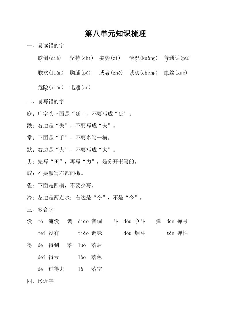 三年级语文上册第八单元知识梳理(部编版)_共4页