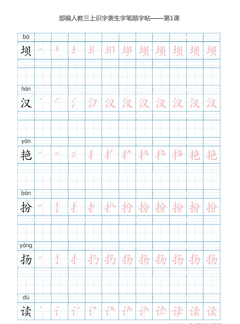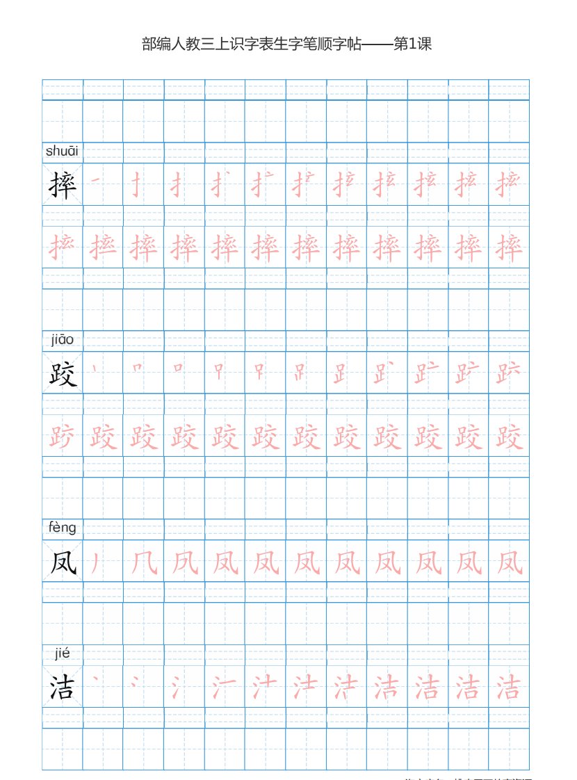 三年级语文上册3上识字表楷体笔顺【73页】(部编版)_共73页