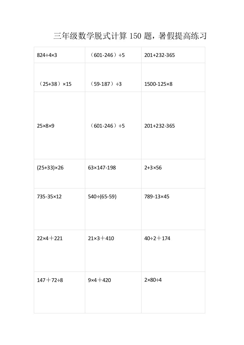 三上数学-脱式计算150题_共8页
