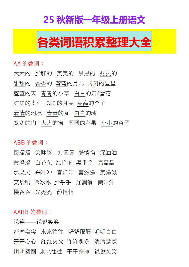 当前位置: 首页小学资源小学一年级正文 【2025秋新版】一年级上册语文各类词语积累整理大全_共2页 小学一年级 2 周前 0 0 5 以上为部分内容预览,如需源文档请登录您的会员账号进行下载! 声明:本站所有文章,如无特殊说明或标注,均为本站原创发布。任何个人或组织,在未征得本站同意时,禁止复制、盗用、采集、发布本站内容到任何网站、书籍等各类媒体平台。如若本站内容侵犯了原著者的合法权益,可联系我们进行处理。 尚学资源永久会员 打赏 收藏 海报 链接