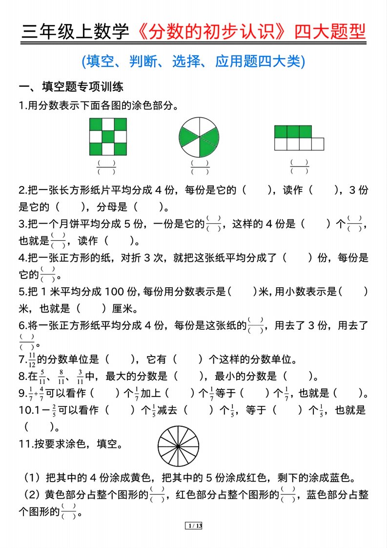当前位置: 首页小学资源小学三年级正文 三上数学《分数的初步认识》四大题型(含答案13页)_共13页 小学三年级 1 周前 0 0 10 以上为部分内容预览,如需源文档请登录您的会员账号进行下载! 声明:本站所有文章,如无特殊说明或标注,均为本站原创发布。任何个人或组织,在未征得本站同意时,禁止复制、盗用、采集、发布本站内容到任何网站、书籍等各类媒体平台。如若本站内容侵犯了原著者的合法权益,可联系我们进行处理。 尚学资源永久会员 打赏 收藏 海报 链接