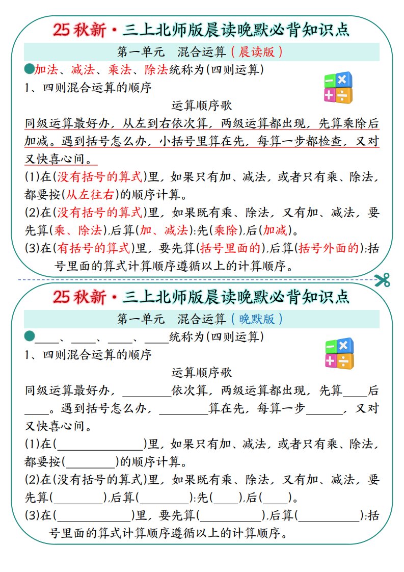 当前位置: 首页小学资源小学三年级正文 25秋新三上数学北师版晨读晚默必背知识点19页_共19页 小学三年级 1 周前 0 0 10 以上为部分内容预览,如需源文档请登录您的会员账号进行下载! 声明:本站所有文章,如无特殊说明或标注,均为本站原创发布。任何个人或组织,在未征得本站同意时,禁止复制、盗用、采集、发布本站内容到任何网站、书籍等各类媒体平台。如若本站内容侵犯了原著者的合法权益,可联系我们进行处理。 尚学资源永久会员 打赏 收藏 海报 链接