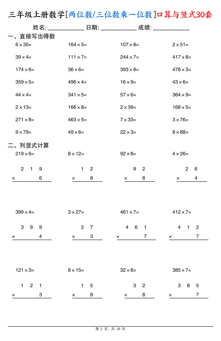 当前位置: 首页小学资源小学三年级正文 三上数学两位数三位数乘一位数口算与竖式30套_共30页 小学三年级 1 周前 0 0 15 以上为部分内容预览,如需源文档请登录您的会员账号进行下载! 声明:本站所有文章,如无特殊说明或标注,均为本站原创发布。任何个人或组织,在未征得本站同意时,禁止复制、盗用、采集、发布本站内容到任何网站、书籍等各类媒体平台。如若本站内容侵犯了原著者的合法权益,可联系我们进行处理。 尚学资源永久会员 打赏 收藏 海报 链接