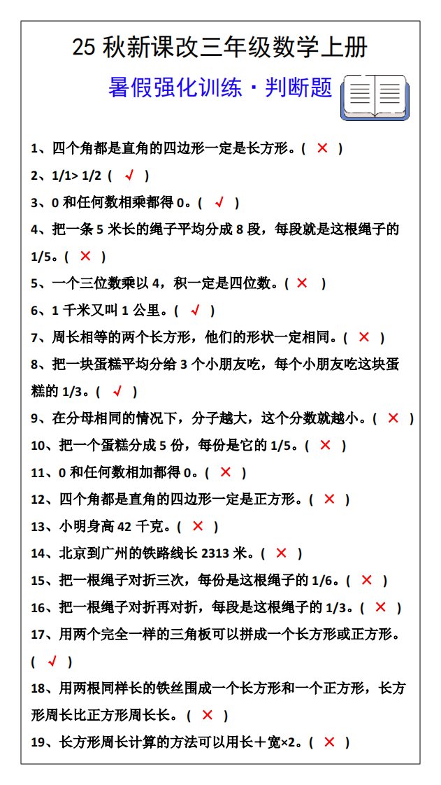 当前位置: 首页小学资源小学三年级正文 【2025秋新版】三年级数学上册判断题暑假强化训练题_共3页 小学三年级 1 周前 0 0 5 以上为部分内容预览,如需源文档请登录您的会员账号进行下载! 声明:本站所有文章,如无特殊说明或标注,均为本站原创发布。任何个人或组织,在未征得本站同意时,禁止复制、盗用、采集、发布本站内容到任何网站、书籍等各类媒体平台。如若本站内容侵犯了原著者的合法权益,可联系我们进行处理。 尚学资源永久会员 打赏 收藏 海报 链接