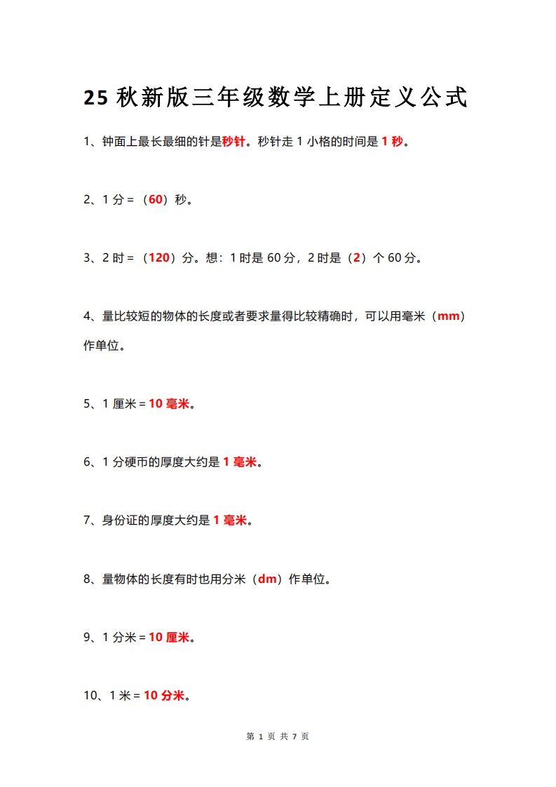 当前位置: 首页小学资源小学三年级正文 【2025秋新版】三年级数学上册所有定义和概念汇总整理_共7页 小学三年级 1 周前 0 0 5 以上为部分内容预览,如需源文档请登录您的会员账号进行下载! 声明:本站所有文章,如无特殊说明或标注,均为本站原创发布。任何个人或组织,在未征得本站同意时,禁止复制、盗用、采集、发布本站内容到任何网站、书籍等各类媒体平台。如若本站内容侵犯了原著者的合法权益,可联系我们进行处理。 尚学资源永久会员 打赏 收藏 海报 链接