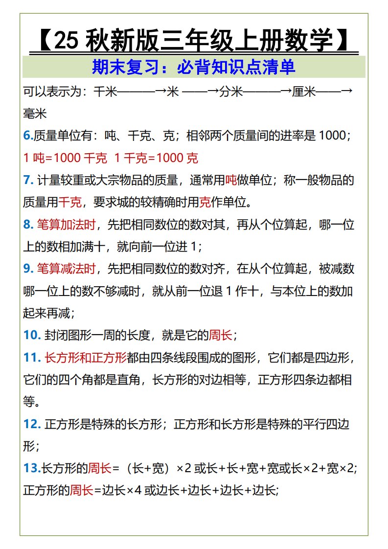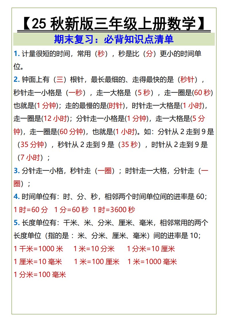 当前位置: 首页小学资源小学三年级正文 【2025秋新版】三年级上册数学必背知识点清单_共4页 小学三年级 1 周前 0 0 5 以上为部分内容预览,如需源文档请登录您的会员账号进行下载! 声明:本站所有文章,如无特殊说明或标注,均为本站原创发布。任何个人或组织,在未征得本站同意时,禁止复制、盗用、采集、发布本站内容到任何网站、书籍等各类媒体平台。如若本站内容侵犯了原著者的合法权益,可联系我们进行处理。 尚学资源永久会员 打赏 收藏 海报 链接