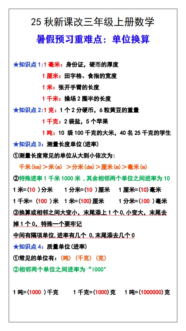 当前位置: 首页小学资源小学三年级正文 【2025秋新版】三年级数学上册难点测量单位换算_共1页 小学三年级 1 周前 0 0 5 以上为部分内容预览,如需源文档请登录您的会员账号进行下载! 声明:本站所有文章,如无特殊说明或标注,均为本站原创发布。任何个人或组织,在未征得本站同意时,禁止复制、盗用、采集、发布本站内容到任何网站、书籍等各类媒体平台。如若本站内容侵犯了原著者的合法权益,可联系我们进行处理。 尚学资源永久会员 打赏 收藏 海报 链接