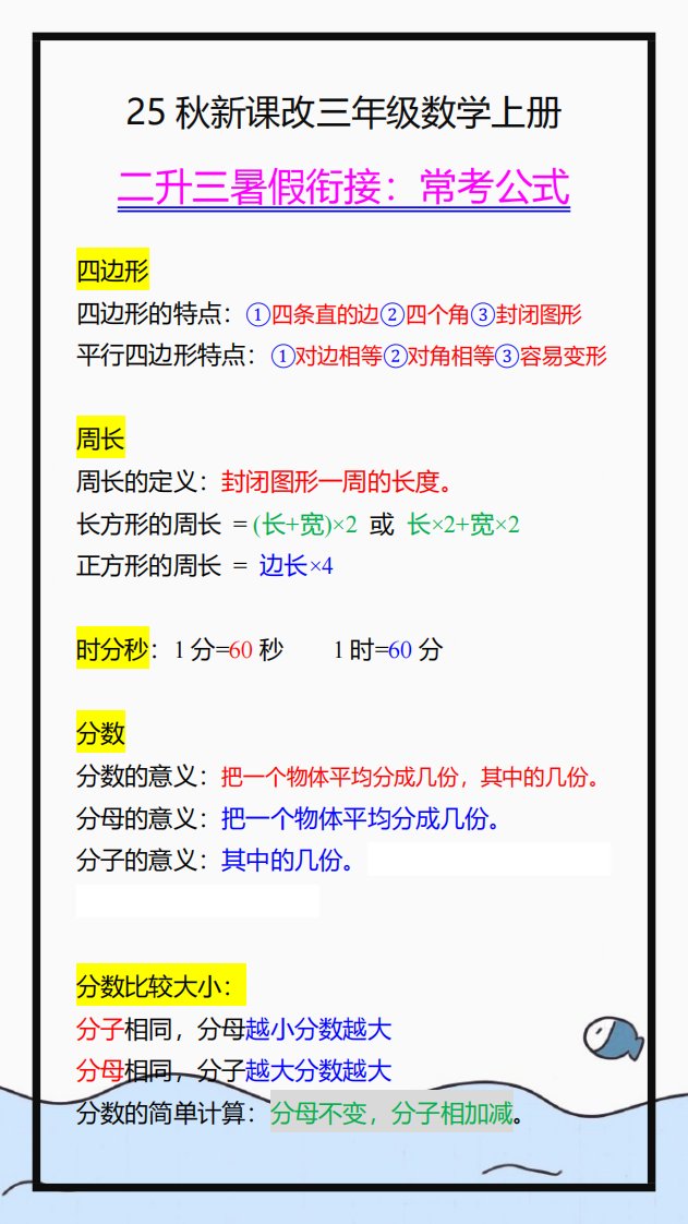 【2025秋新版】三年级数学上册常考公式,暑假衔接背一背!_共1页