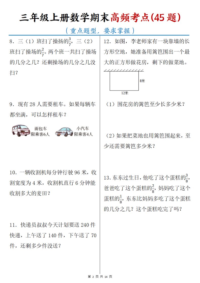 三上数学期末高频考点(45道重点题型)含答案14页_共14页