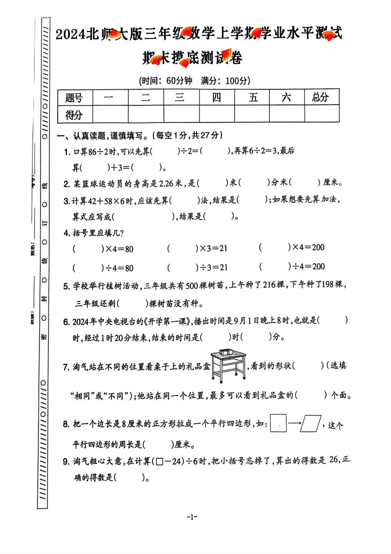 当前位置: 首页小学资源小学三年级正文 2024秋三上数学期末试卷北师大版_共26页 小学三年级 1 周前 0 0 15 以上为部分内容预览,如需源文档请登录您的会员账号进行下载! 声明:本站所有文章,如无特殊说明或标注,均为本站原创发布。任何个人或组织,在未征得本站同意时,禁止复制、盗用、采集、发布本站内容到任何网站、书籍等各类媒体平台。如若本站内容侵犯了原著者的合法权益,可联系我们进行处理。 尚学资源永久会员 打赏 收藏 海报 链接