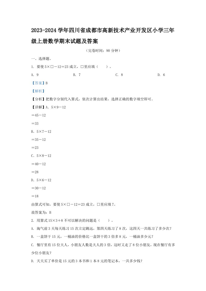 当前位置: 首页小学资源小学三年级正文 2023-2024学年四川省成都市高新技术产业开发区小学三年级上册数学期末试题及答案(Word版)_共18页 小学三年级 1 周前 0 0 10 以上为部分内容预览,如需源文档请登录您的会员账号进行下载! 声明:本站所有文章,如无特殊说明或标注,均为本站原创发布。任何个人或组织,在未征得本站同意时,禁止复制、盗用、采集、发布本站内容到任何网站、书籍等各类媒体平台。如若本站内容侵犯了原著者的合法权益,可联系我们进行处理。 尚学资源永久会员 打赏 收藏 海报 链接