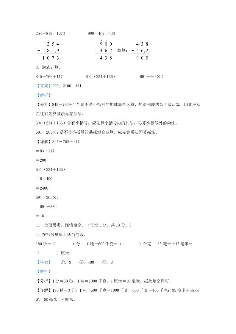 2023-2024学年湖北省武汉市武昌区小学三年级上册数学期末试题及答案(Word版)_共15页