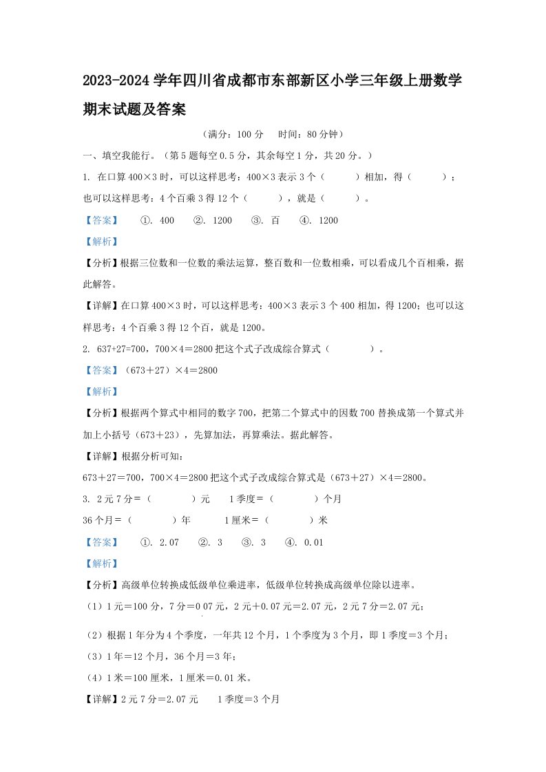 当前位置: 首页小学资源小学三年级正文 2023-2024学年四川省成都市东部新区小学三年级上册数学期末试题及答案(Word版)_共13页 小学三年级 1 周前 0 0 10 以上为部分内容预览,如需源文档请登录您的会员账号进行下载! 声明:本站所有文章,如无特殊说明或标注,均为本站原创发布。任何个人或组织,在未征得本站同意时,禁止复制、盗用、采集、发布本站内容到任何网站、书籍等各类媒体平台。如若本站内容侵犯了原著者的合法权益,可联系我们进行处理。 尚学资源永久会员 打赏 收藏 海报 链接