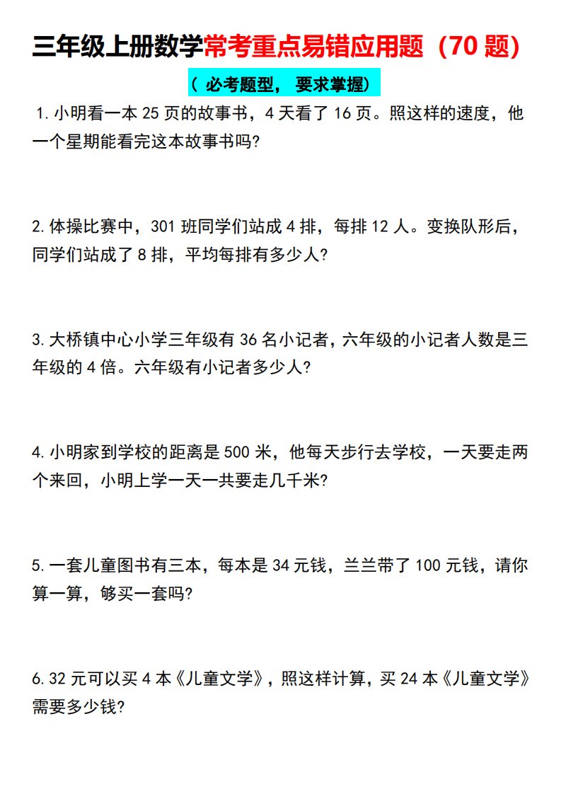 当前位置: 首页小学资源小学三年级正文 三年级上册数学常考重点易错应用题(70题)_共14页 小学三年级 1 周前 0 0 10 以上为部分内容预览,如需源文档请登录您的会员账号进行下载! 声明:本站所有文章,如无特殊说明或标注,均为本站原创发布。任何个人或组织,在未征得本站同意时,禁止复制、盗用、采集、发布本站内容到任何网站、书籍等各类媒体平台。如若本站内容侵犯了原著者的合法权益,可联系我们进行处理。 尚学资源永久会员 打赏 收藏 海报 链接