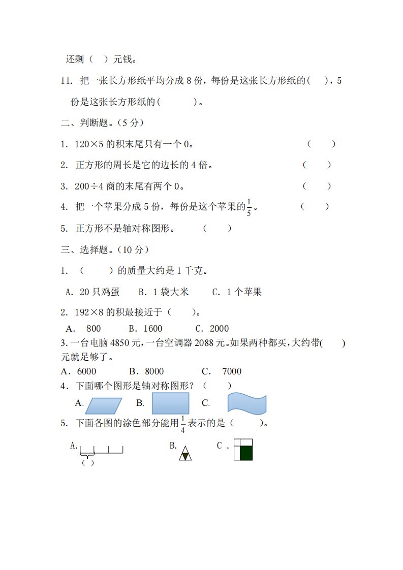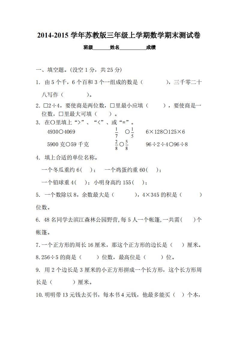 当前位置: 首页小学资源小学三年级正文 苏教版小学三年级数学上册期末考试试卷_共4页 小学三年级 1 周前 0 0 5 以上为部分内容预览,如需源文档请登录您的会员账号进行下载! 声明:本站所有文章,如无特殊说明或标注,均为本站原创发布。任何个人或组织,在未征得本站同意时,禁止复制、盗用、采集、发布本站内容到任何网站、书籍等各类媒体平台。如若本站内容侵犯了原著者的合法权益,可联系我们进行处理。 尚学资源永久会员 打赏 收藏 海报 链接