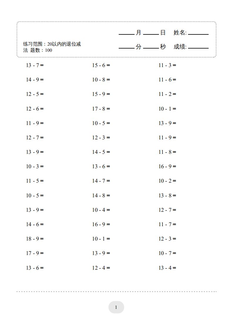 当前位置: 首页小学资源小学一年级正文 一年级数学上册(20以内的退位减法)1500题(人教版)(1)_共30页 小学一年级 2 周前 0 0 15 以上为部分内容预览,如需源文档请登录您的会员账号进行下载! 声明:本站所有文章,如无特殊说明或标注,均为本站原创发布。任何个人或组织,在未征得本站同意时,禁止复制、盗用、采集、发布本站内容到任何网站、书籍等各类媒体平台。如若本站内容侵犯了原著者的合法权益,可联系我们进行处理。 尚学资源永久会员 打赏 收藏 海报 链接