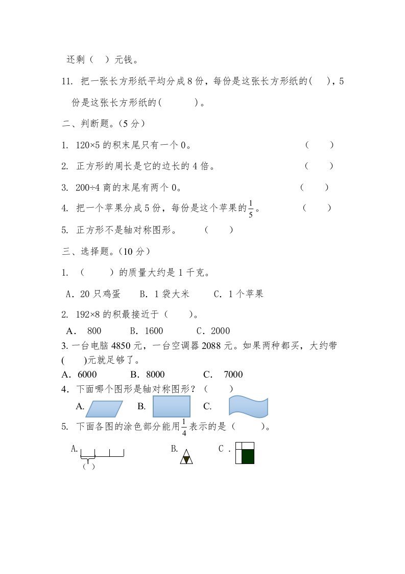 当前位置: 首页小学资源小学三年级正文 三年级数学上册期末考试检测试题(苏教版)_共4页 小学三年级 1 周前 0 0 5 以上为部分内容预览,如需源文档请登录您的会员账号进行下载! 声明:本站所有文章,如无特殊说明或标注,均为本站原创发布。任何个人或组织,在未征得本站同意时,禁止复制、盗用、采集、发布本站内容到任何网站、书籍等各类媒体平台。如若本站内容侵犯了原著者的合法权益,可联系我们进行处理。 尚学资源永久会员 打赏 收藏 海报 链接