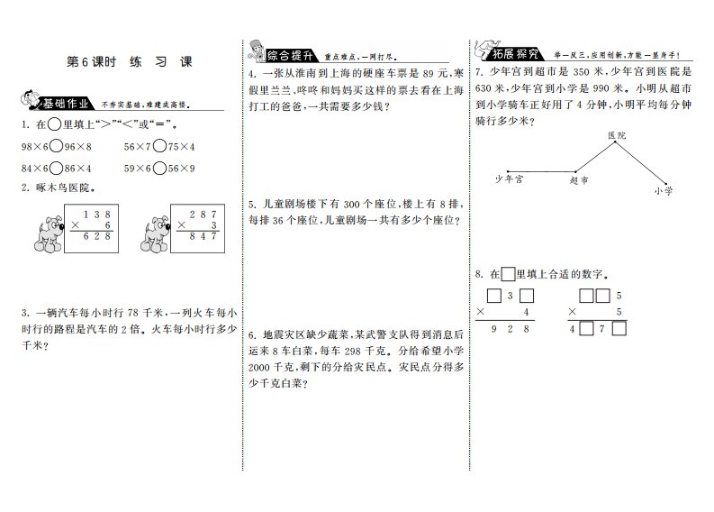 三年级数学上册6.6练习课·(北师大版)_共2页