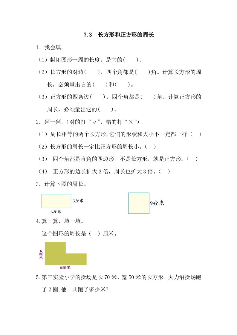 三年级数学上册7.3长方形和正方形的周长(人教版)_共2页