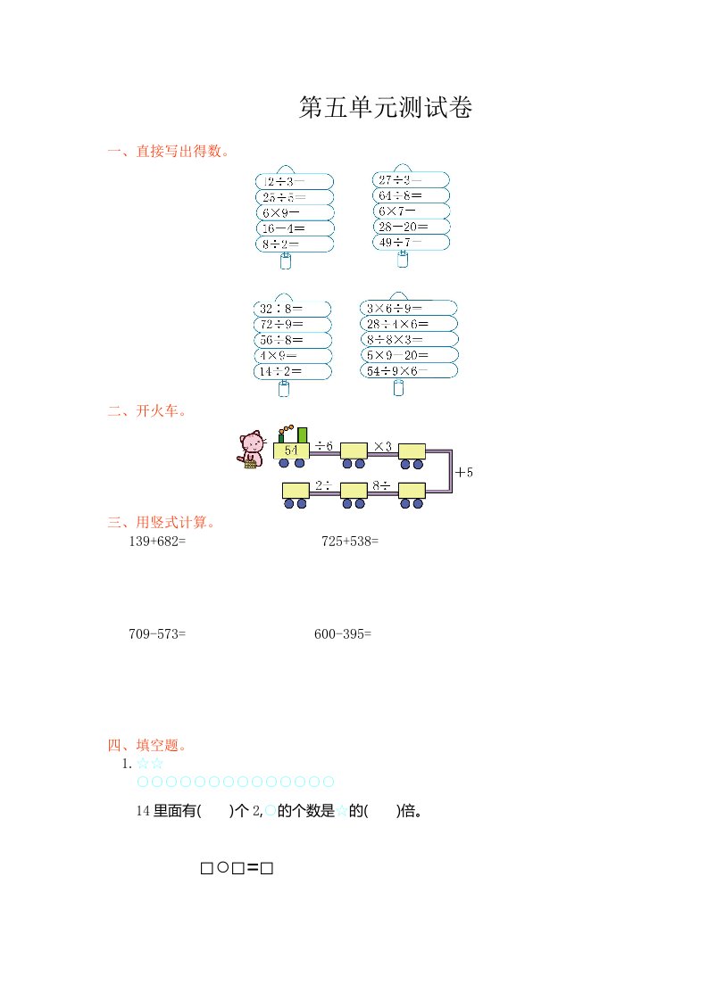 三年级数学上册第五单元测试卷(人教版)_共4页