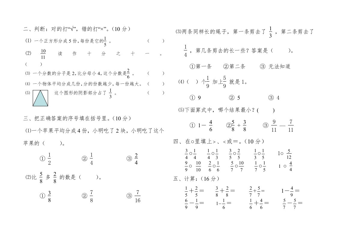 当前位置: 首页小学资源小学三年级正文 三年级数学上册分数的初步认识单元测试题(人教版)_共4页 小学三年级 1 周前 0 0 5 以上为部分内容预览,如需源文档请登录您的会员账号进行下载! 声明:本站所有文章,如无特殊说明或标注,均为本站原创发布。任何个人或组织,在未征得本站同意时,禁止复制、盗用、采集、发布本站内容到任何网站、书籍等各类媒体平台。如若本站内容侵犯了原著者的合法权益,可联系我们进行处理。 尚学资源永久会员 打赏 收藏 海报 链接