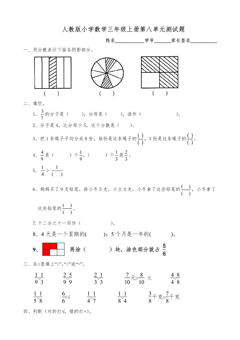 当前位置: 首页小学资源小学三年级正文 三年级数学上册第8单元《分数的初步认识》测试题B(人教版)_共3页 小学三年级 1 周前 0 0 5 以上为部分内容预览,如需源文档请登录您的会员账号进行下载! 声明:本站所有文章,如无特殊说明或标注,均为本站原创发布。任何个人或组织,在未征得本站同意时,禁止复制、盗用、采集、发布本站内容到任何网站、书籍等各类媒体平台。如若本站内容侵犯了原著者的合法权益,可联系我们进行处理。 尚学资源永久会员 打赏 收藏 海报 链接
