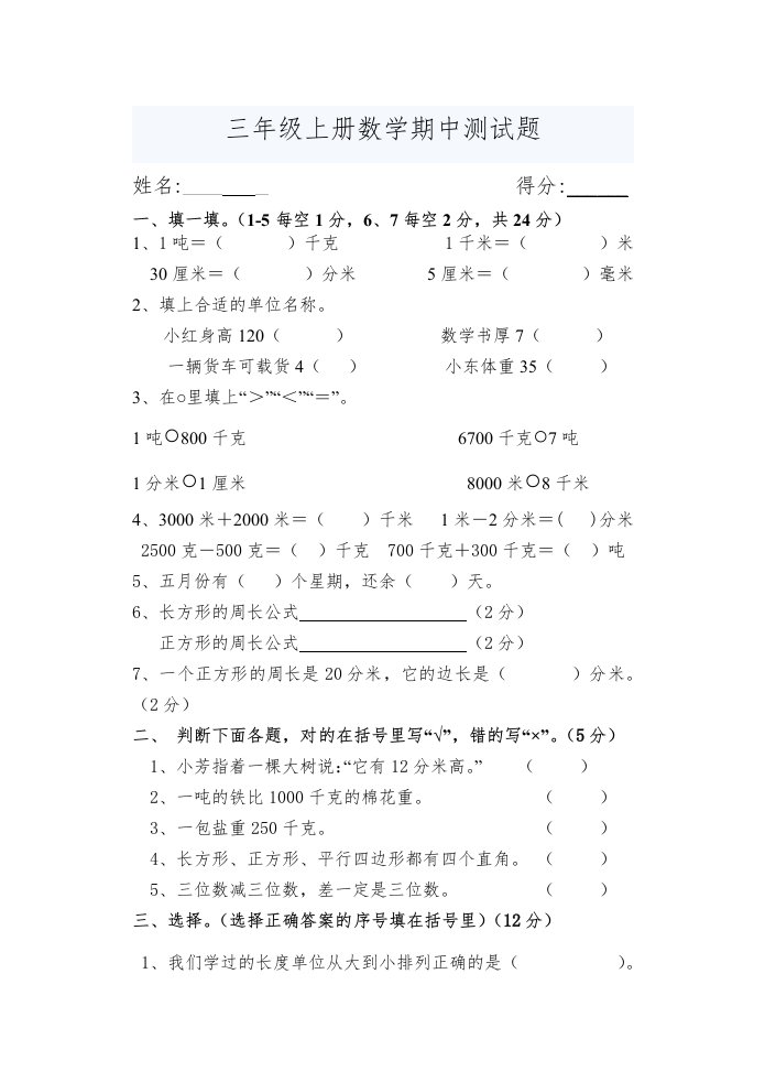 当前位置: 首页小学资源小学三年级正文 三年级数学上册期中考试题(人教版)_共5页 小学三年级 1 周前 0 0 5 以上为部分内容预览,如需源文档请登录您的会员账号进行下载! 声明:本站所有文章,如无特殊说明或标注,均为本站原创发布。任何个人或组织,在未征得本站同意时,禁止复制、盗用、采集、发布本站内容到任何网站、书籍等各类媒体平台。如若本站内容侵犯了原著者的合法权益,可联系我们进行处理。 尚学资源永久会员 打赏 收藏 海报 链接