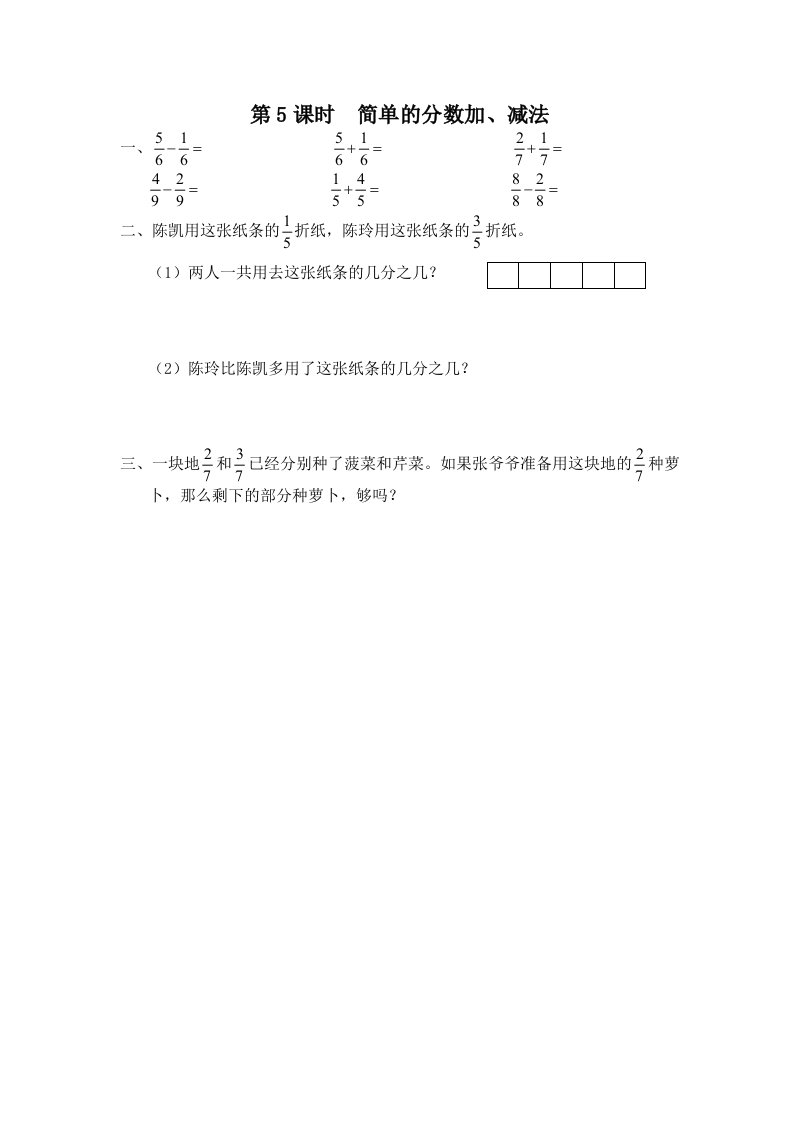 三年级数学上册第5课时简单的分数加、减法(苏教版)_共2页