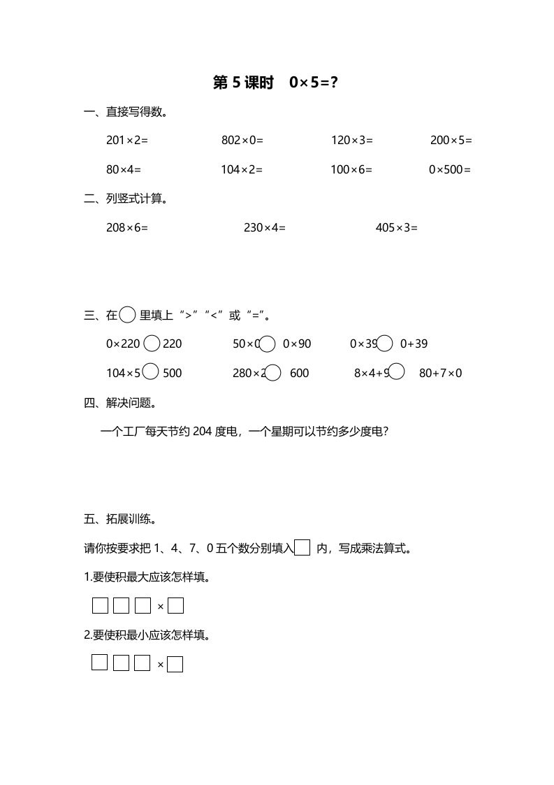 三年级数学上册第5课时0×5=?(北师大版)_共2页