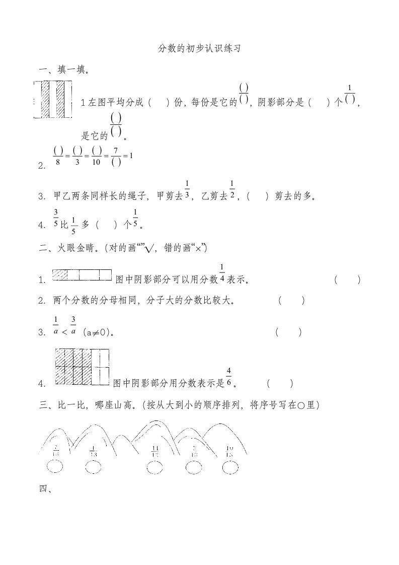 三年级数学上册分数的初步认识测试卷[1](人教版)_共6页