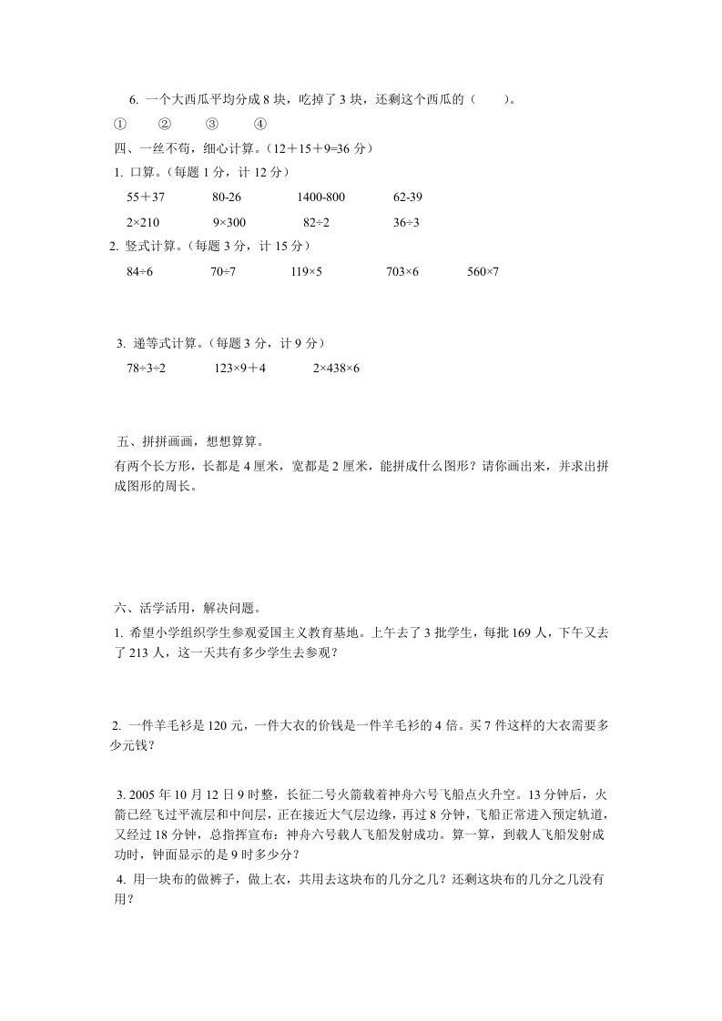 当前位置: 首页小学资源小学三年级正文 三年级数学上册期末考试试题(人教版)_共8页 小学三年级 1 周前 0 0 5 以上为部分内容预览,如需源文档请登录您的会员账号进行下载! 声明:本站所有文章,如无特殊说明或标注,均为本站原创发布。任何个人或组织,在未征得本站同意时,禁止复制、盗用、采集、发布本站内容到任何网站、书籍等各类媒体平台。如若本站内容侵犯了原著者的合法权益,可联系我们进行处理。 尚学资源永久会员 打赏 收藏 海报 链接